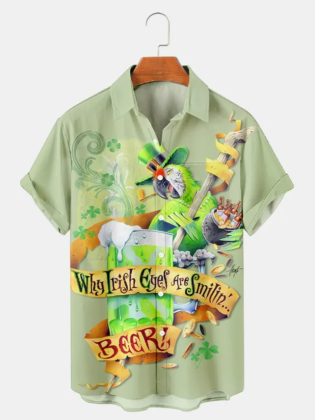 Men's Irish Parrot Saint Patrick Holiday Printed Pocket Shirt