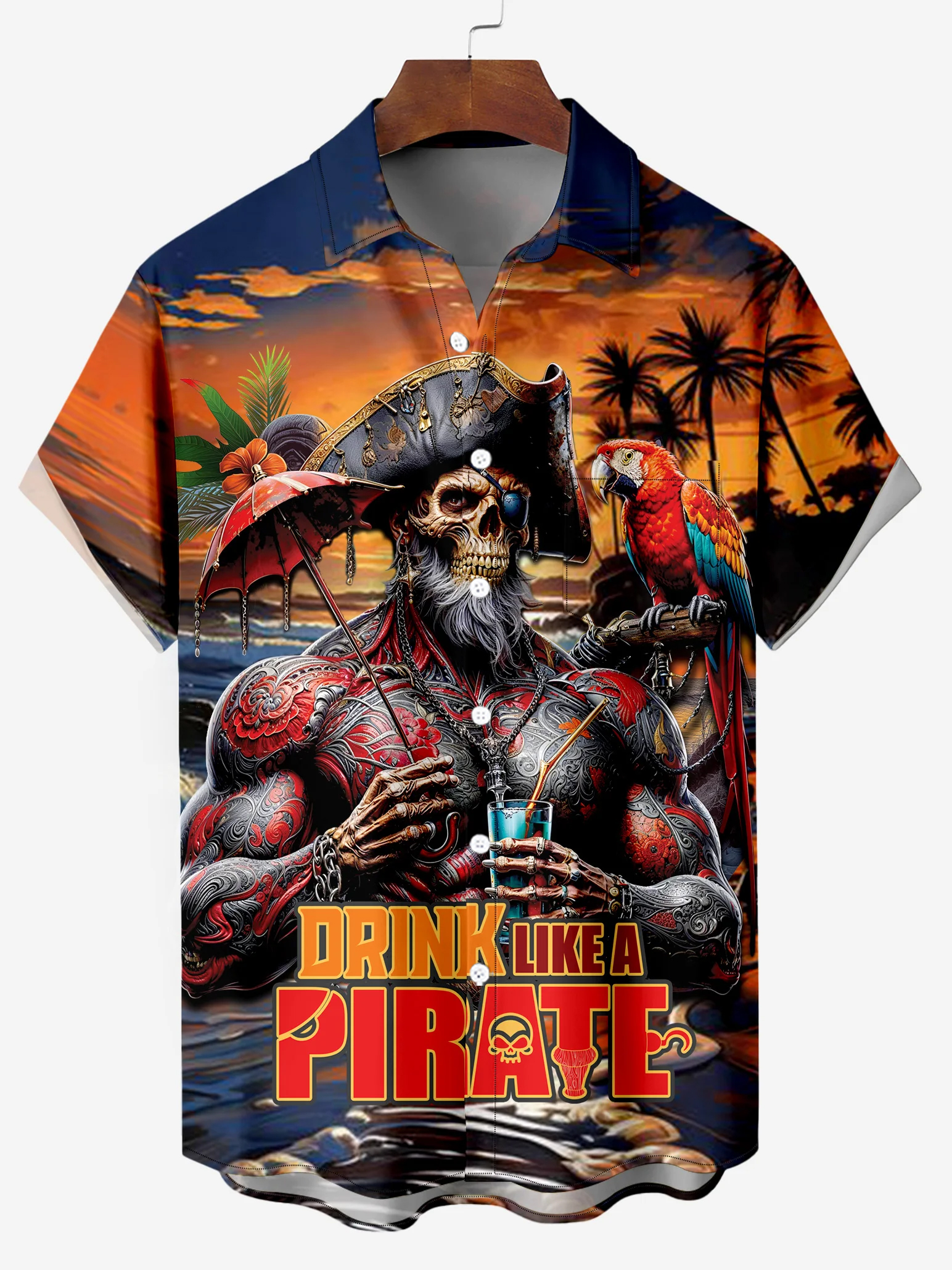 Drink Like a Pirate in Hawaii Pirate Parrot Short Sleeve Shirt