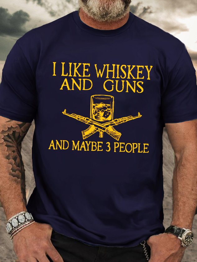 I Like whisky And Guns And Maybe 3 People Funny Casual Crew Neck T-Shirt