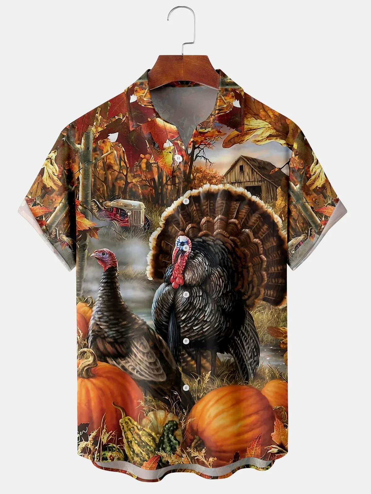 Men's Casual Farm Turkey Print Lapel Short Sleeve Shirt Men's Casual Farm Turkey Print Lapel Short Sleeve Shirt Men's Casual Farm Turkey Print Lapel Short Sleeve Shirt Men's Casual Farm Turkey Print Lapel Short Sleeve Shirt