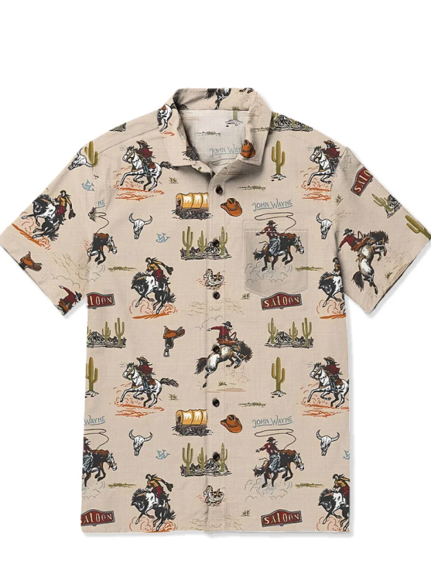 Men's casual retro western denim patchwork short sleeved pocket shirt