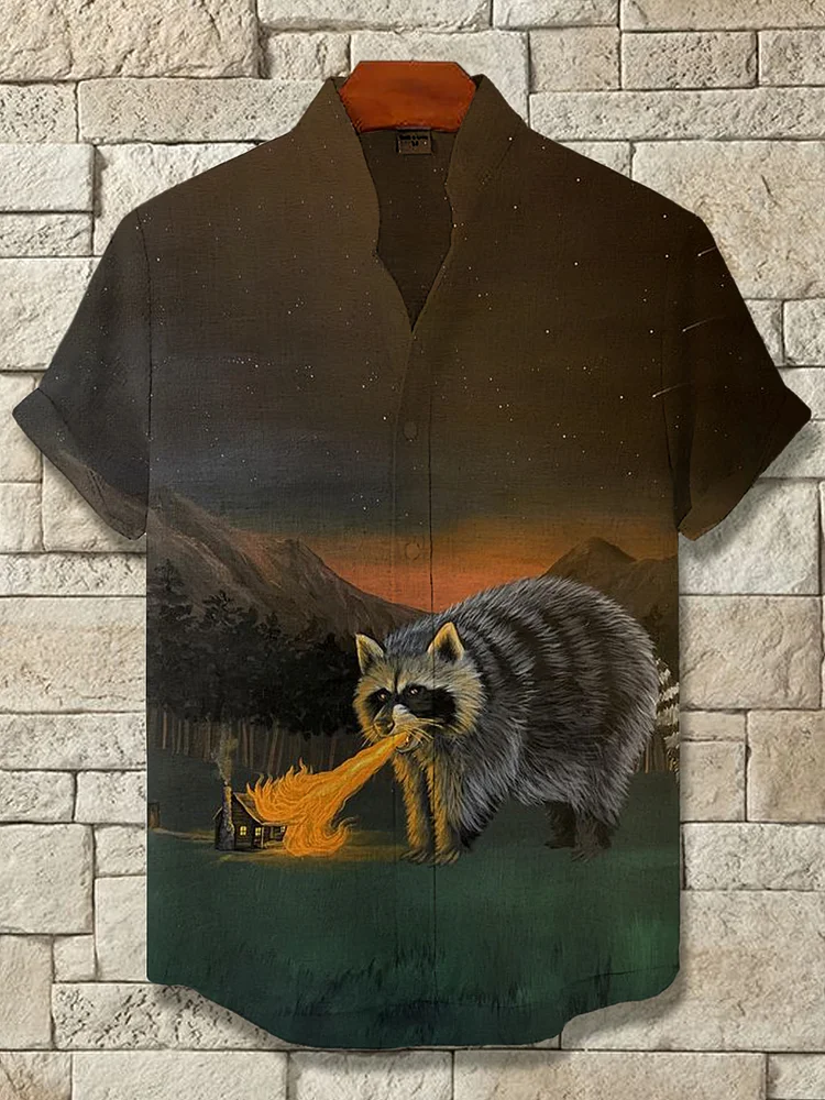 Men's Forest Giant Fire Breathing Raccoon Pattern Art Short Sleeve Shirt