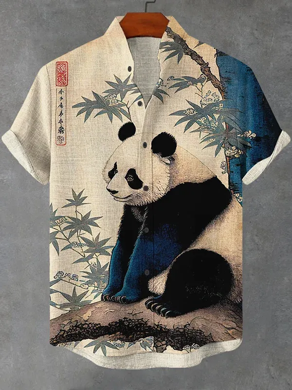 Men's Hawaiian Panda Vintage Short Sleeve Shirt
