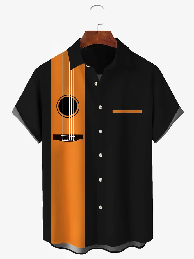 Men's Music Casual Bowling Lapel Short Sleeve Shirt