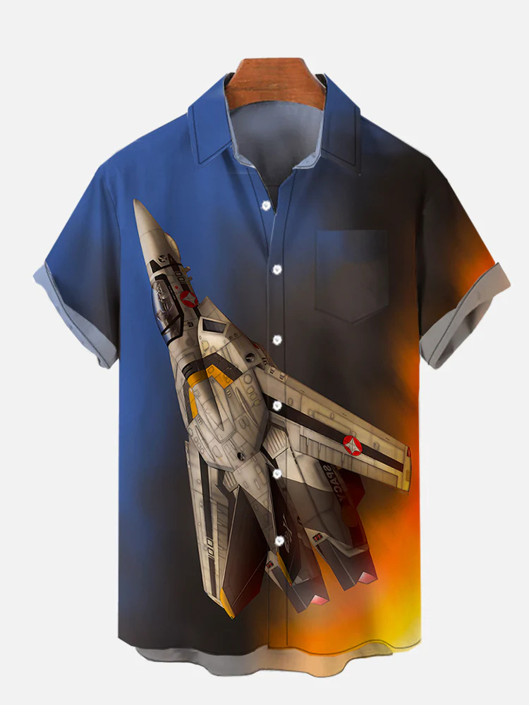 Men's sci-fi cool gradient spaceship lapel short sleeved shirt