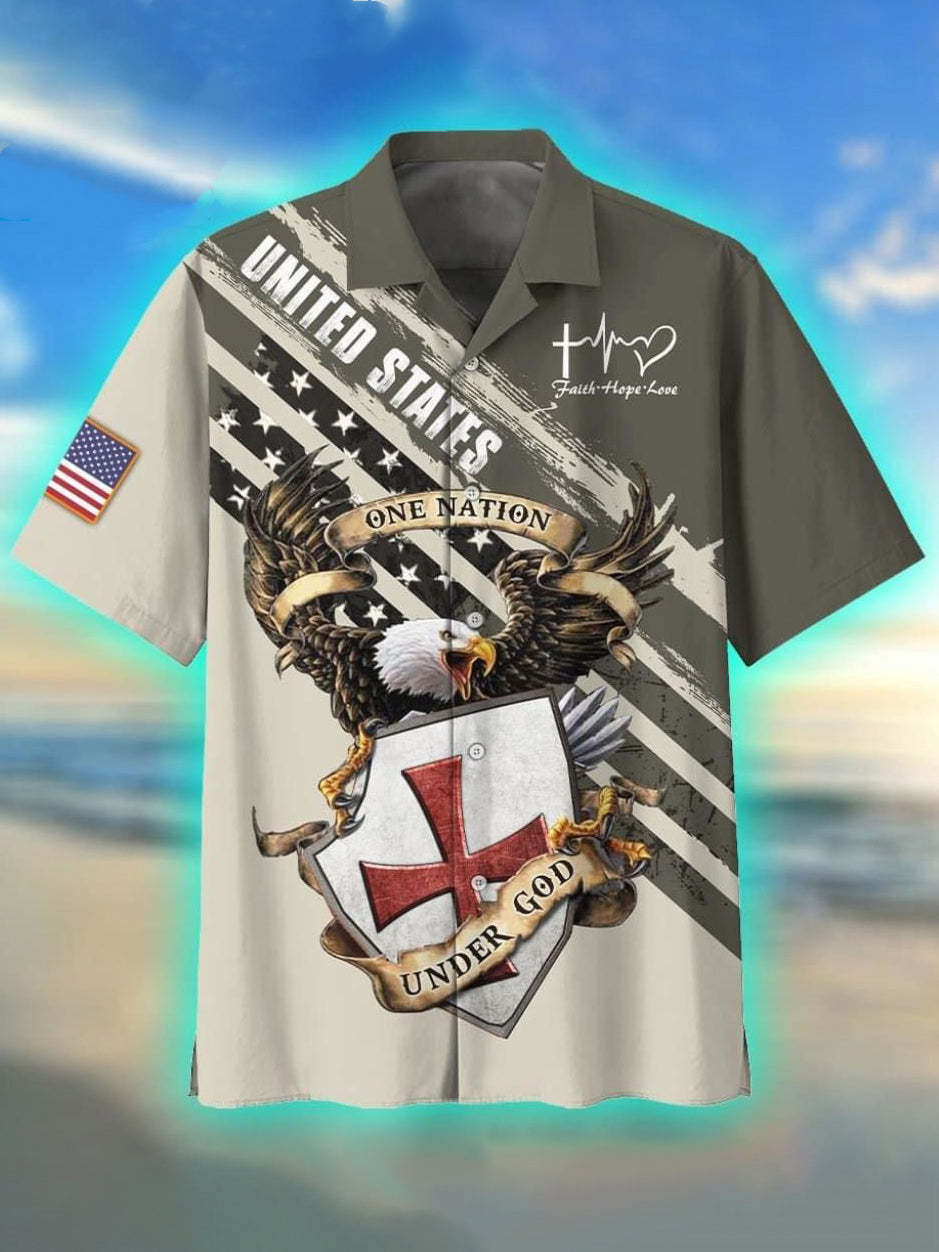 Men's American Flag Day Themed Cuban Collar Hawaiian Shirt