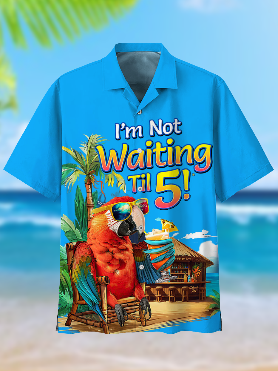 Men's Comfortable Hawaiian Beach Blue Cuban Collar Print Shirt