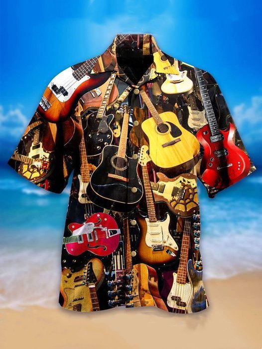 Men's Cuban Collar Retro Guitar Pattern Hawaiian Shirt
