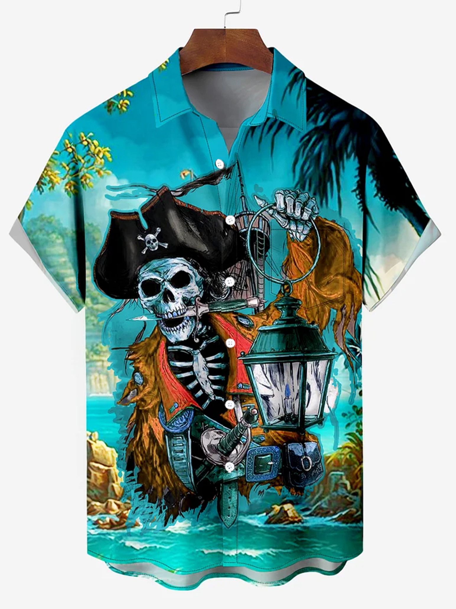 Skeleton Pirate Captain Hawaiian Short Sleeve Shirt