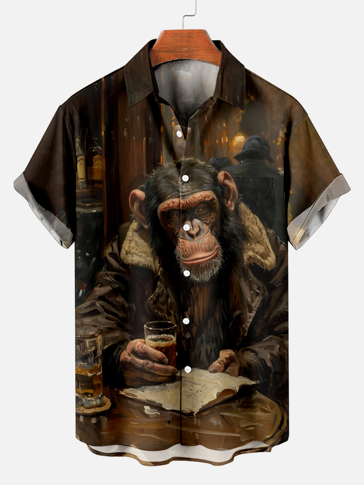 Vintage Gorilla Tavern Print Short Sleeve Shirt